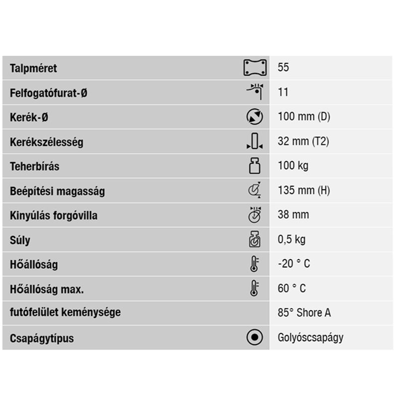 KERÉK TÖMÖRGUMIS BEÁLLÓ FÉKES D101 SZÜRKE HÁTFURATOS BLICKLE LWK-TPA 101K-11-FI-FK VILLÁS KEREKEK Kategória KERÉK, GÖRGŐ