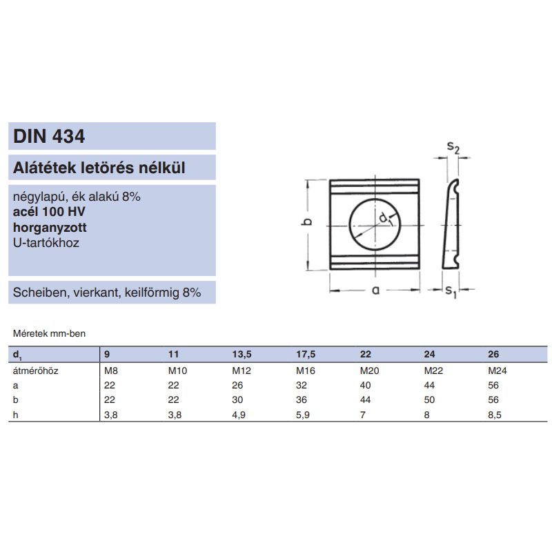 U-ALÁTÉT M22(D24) DIN 434 HG. IMPORT ALÁTÉTEK Kategória CSAVAR, KÖTŐELEM